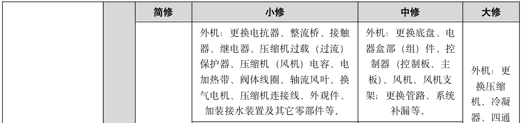 (三)18个月免费包修条件及对应机型:除1.1及1.2项之外的所有的商用空调产品均实行18个月包修。