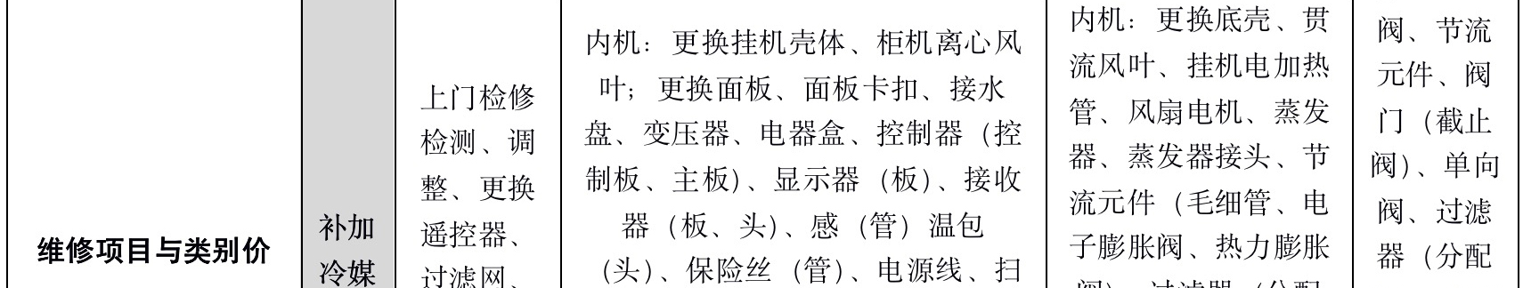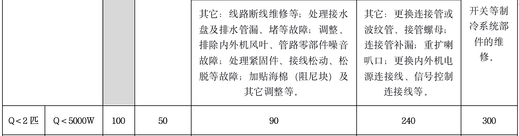2021年度格力电器家用空调包修期外维修项目收费指导